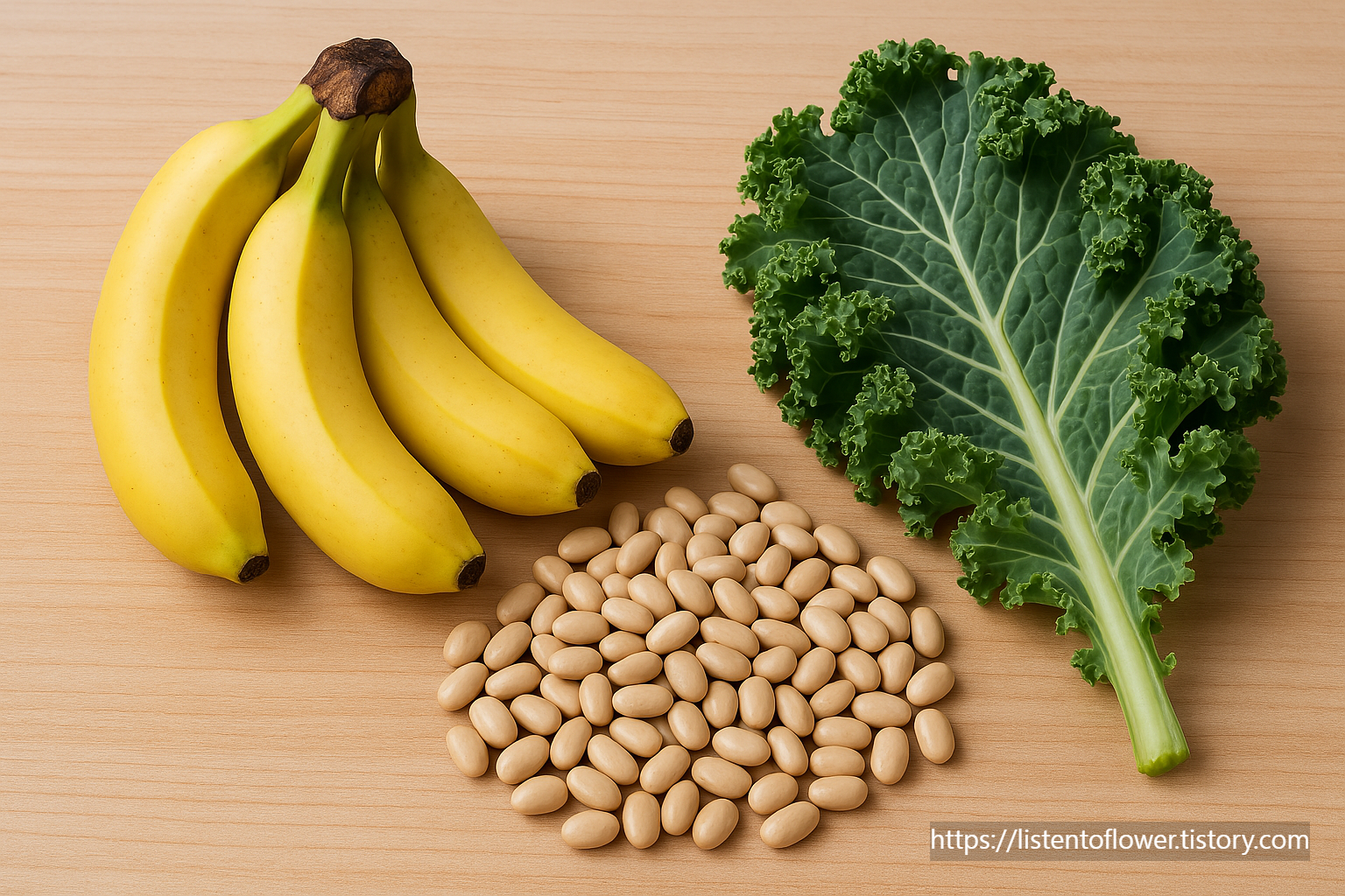 바나나는 세로토닌 생성에 필요한 트립토판이 풍부하고, 콩은 좋은 지방과 단백질을 제공합니다.