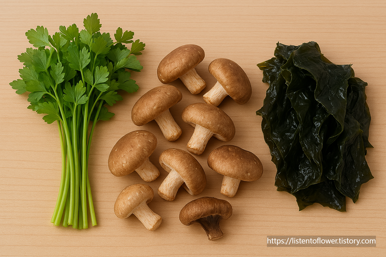 2️⃣ 미역 & 표고버섯: 해조류와 버섯의 만남