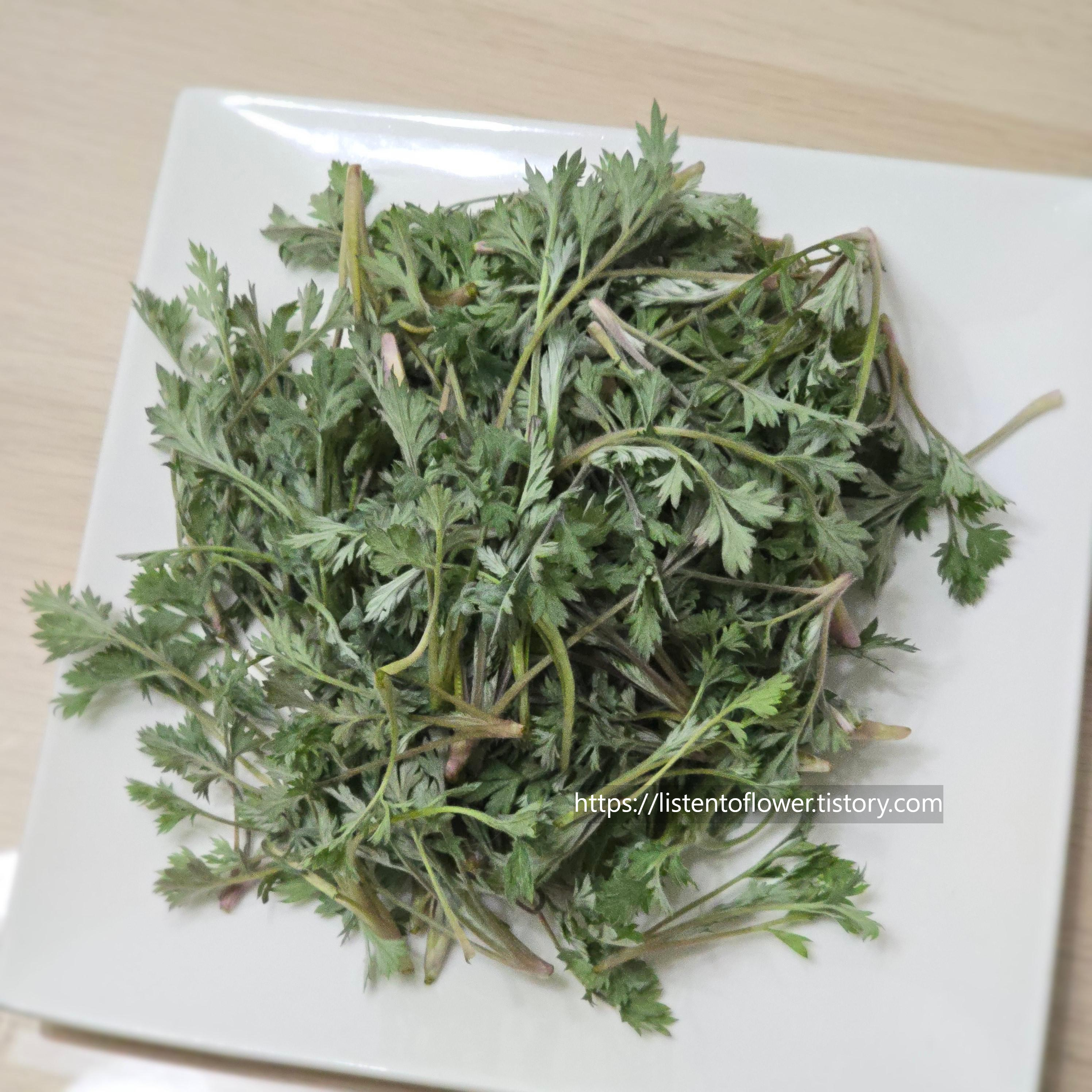 - 말린 쑥을 뜨거운 물에 우려내어 따뜻하게 마시기